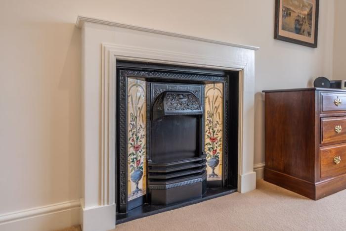 - Generous living room with dual windows supplying captivating views, feature log burner and tiled surround